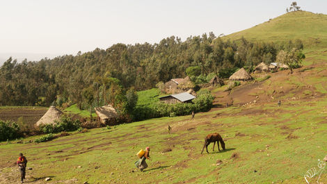 L'Ethiopie est l'un des pays le plus pauvre de la planète. Mon tour du monde en auto-stop m'a fait voir de la pauvreté mais jamais autant de misère en guenilles et de mendicité. C'est un voyage dans le temps, avec ses maisons en torchis, ses champs labourés à la charrue et ses villageois pieds-nus enroulés élegament dans un grand drap blanc aux bordures bleues. Ce décor me rappelle l'Indonésie et la Birmanie.