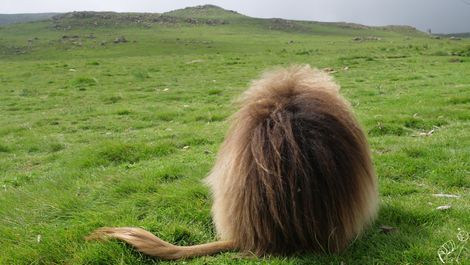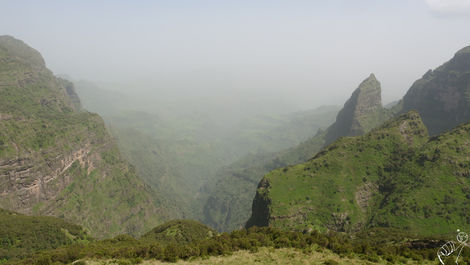 Malgré la pluie quotidienne, j'apprécie beaucoup notre randonnée de cinq jours dans les montagnes du parc National du Simien où je vois de nombreux babouins geladas et des antilopes Meneliks. Fusil en bandoulière, notre garde obligatoire nous protège d'éventuels hyènes et léopards, mais surtout des voleurs de passage.